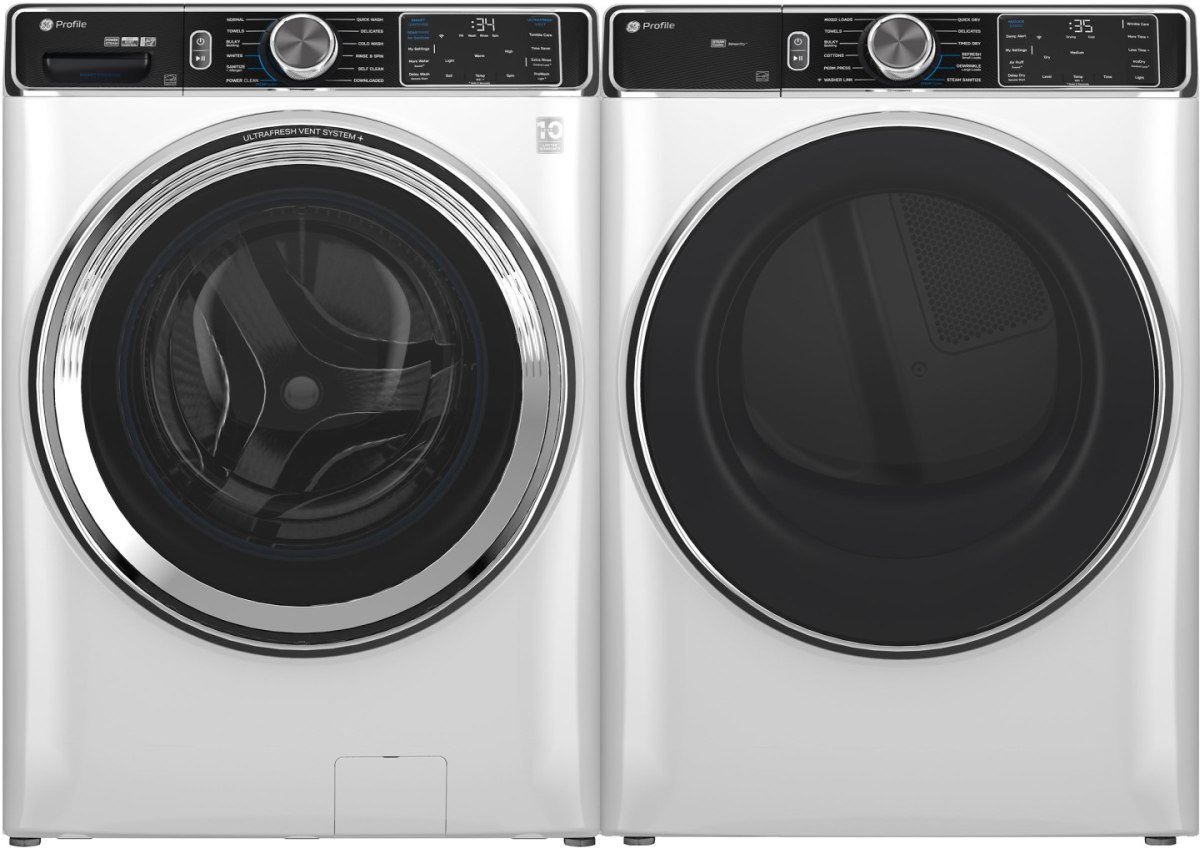 GE® Profile™ White Front Load Washer and Electric Dryer Laundry Pair with 5.3 Cu. Ft. White Front Load Washer and 7.8 Cu. Ft White Electric Dryer.Read More