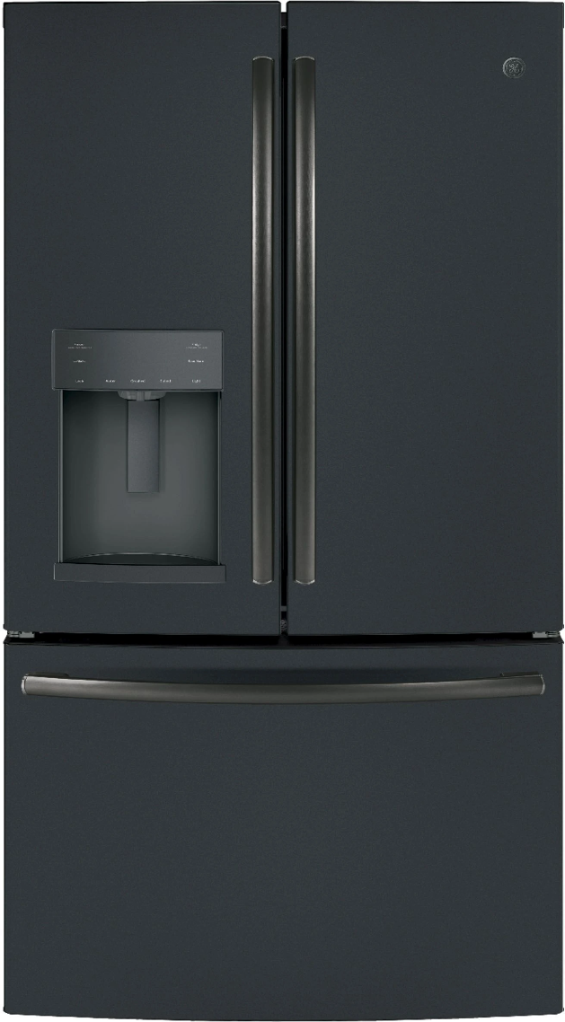 GE 36-inch 27.8 cubic foot Black Slate French Door Refrigerator offers spacious storage with flexible shelving and humidity-controlled drawers. Its sleek finish resists smudges, while advanced cooling keeps food fresh, and convenient features enhance organization, accessibility, and everyday kitchen efficiency.Read More